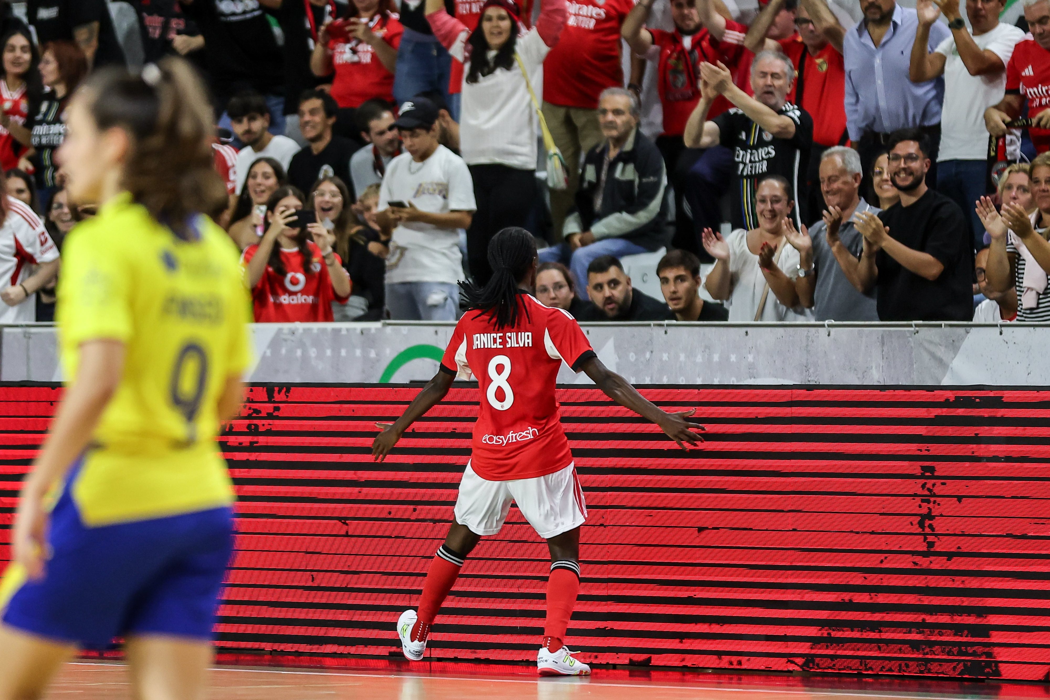 O lance foi analisado pelo VAR e confirmou a expulsão da guarda-redes do Benfica. De seguida, o Nun'Álvares beneficiou de um livre e Camila Silva marcou.